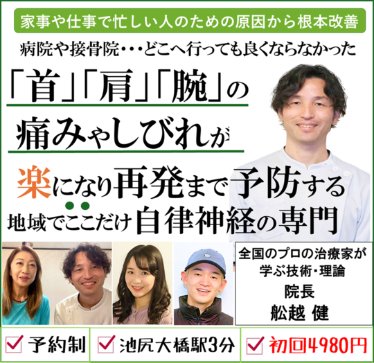 ふなこし足の治療院 スポーツマッサージ鍼灸治療室では日本で唯一当院だけの整体技術「自律神経整体」を使い、全身のバランスを取り戻し、痛みの根本原因を取り除く事により、今まで病院や接骨院、整体院に行っても改善が見込めない方を改善へ導きます。