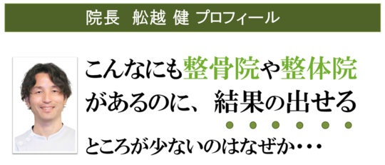 治療院に初めて行くときは、「わかってもらえなかったり、感じ悪かったり、強い営業があったらどうしよう…」などと不安に思うものですが、ふなこし先生の治療院では一切そのようなことはないので、そういった不安をお持ちの方にもお勧めしたいです。