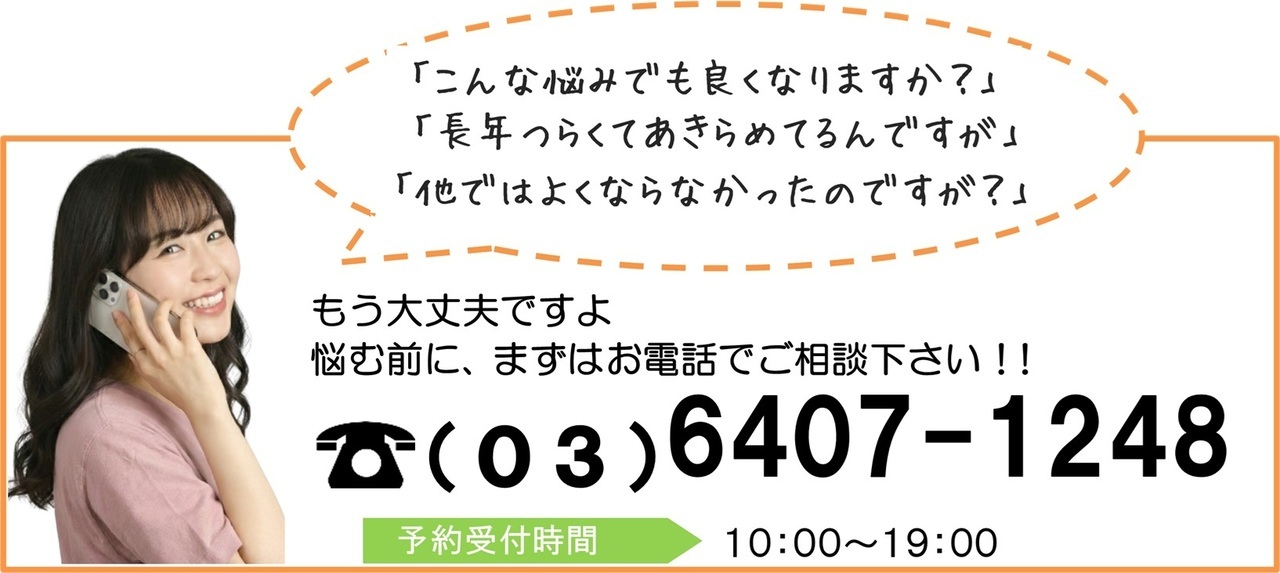 そしてどんな些細なことでも良いので、私に相談してください。きっと体の痛みや不調を根本的に解決する道筋が見つかるはずです。あなたからのお電話をお待ちしています。
