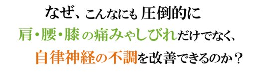 一般的な対処は痛い場所ばかりを追って、全身のバランスに不可欠な「自律神経」に着目せずに筋肉や筋膜だけを見ているのが現状です。筋肉や内臓、血流などの調整に関わる自律神経が乱れることで、不調が現れるケースは多く見られます。