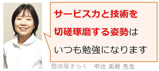 治療院に初めて行くときは、「わかってもらえなかったり、感じ悪かったり、強い営業があったらどうしよう…」などと不安に思うものですが、ふなこし先生の治療院では一切そのようなことはないので、そういった不安をお持ちの方にもお勧めしたいです。