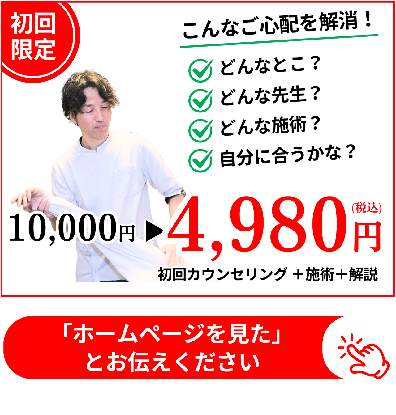 そしてどんな些細なことでも良いので、私に相談してください。きっと体の痛みや不調を根本的に解決する道筋が見つかるはずです。あなたからのお電話をお待ちしています。