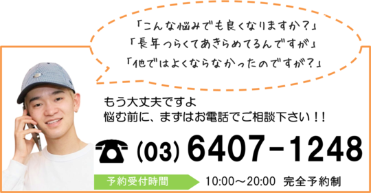 そしてどんな些細なことでも良いので、私に相談してください。きっと体の痛みや不調を根本的に解決する道筋が見つかるはずです。あなたからのお電話をお待ちしています。